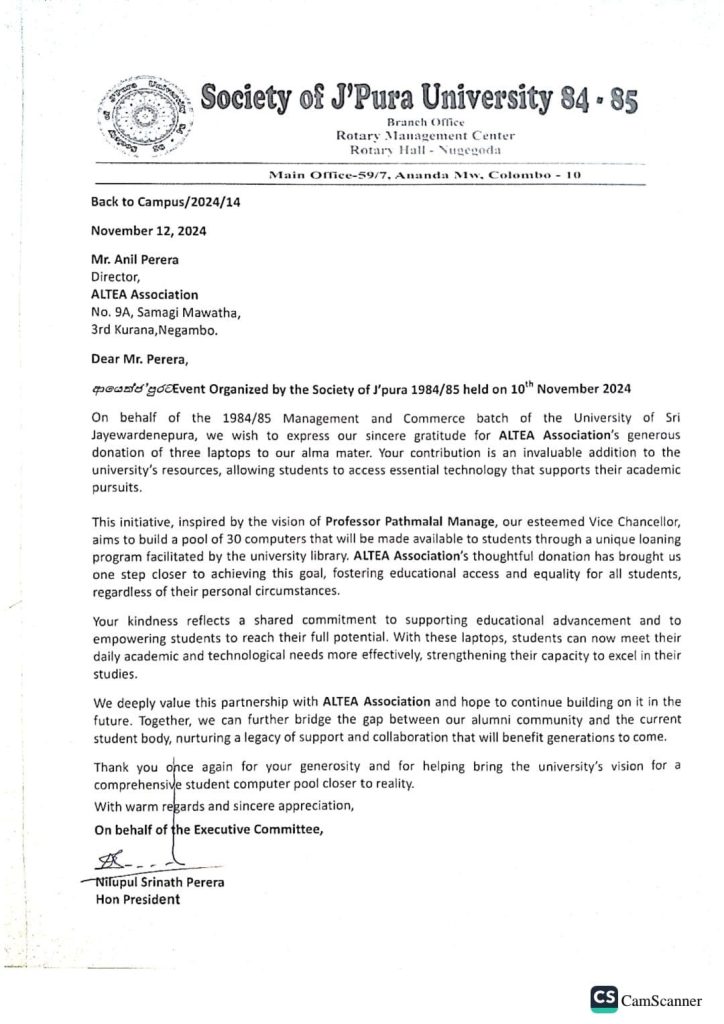 Three Laptops Donated to University of Sri Jayewardenapura